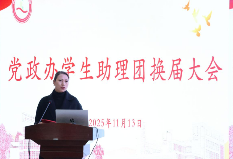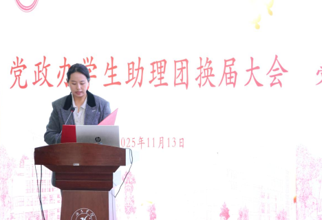 党政办公室秘书科副科长洛伍拉卓老师宣读第十四届学生助理团名单。她向新加入的各位助理表示热烈欢迎,勉励大家快速融入党政办的工作氛围、熟悉岗位职责,在实践中锤炼成长、履职担当。