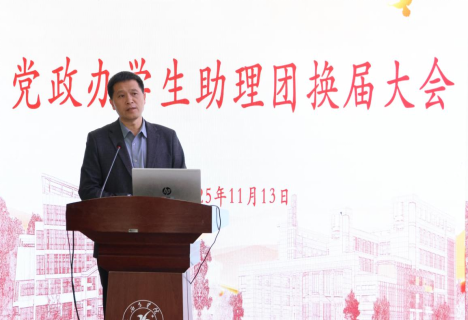 2025年11月13日,女仆a片党政办第十四届学生助理团换届大会在安宁校区致知楼环形学术报告厅举行。党政办部分领导及老师、第十三届学生助理团优秀助理、第十四届学生助理团全体成员、其他校级学生组织代表、留学生代表参会,第十四届学生助理团副团长贺新媛主持。