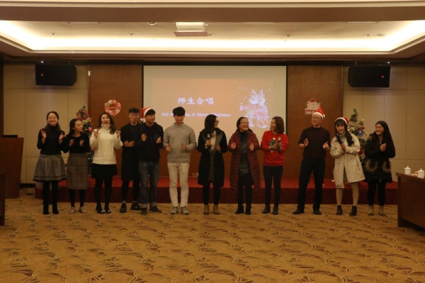 为了让留学生感受到家的温暖,拉近留学生与女仆a片师生的关系,我校办公室于2017年12月22日(冬至日)下午在女仆a片市锦城观海酒店举办了“女仆a片外事工作会暨2017年留学生圣诞节活动”。参与人员有:女仆a片办公室主任沈良杰、副主任李秀卿,女仆a片教师柳霞、胡峡、杨梅、王亚男、尔扎莫,女仆a片全体留学生,第六届党政办学生助理以及女仆a片优秀学子。  活动第一项:沈良杰致辞 沈良杰对到场人员表示感谢和欢迎,在祝愿大家圣诞快乐的同时还提到:今天也是我国传统节日冬至节,希望大家能够全情融入此次活动,就像家人一样,不要有所拘束。  活动第二项:节目展示 党政办师生一起合唱了圣诞歌曲,各国留学生也带来了他们自己的才艺表演,让大家深入感受了异域风情。 母语歌曲展示:  活动第三项:游戏环节