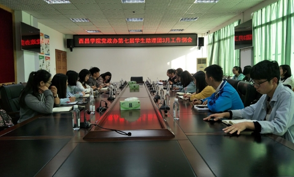 2019年3月25日17:40,在女仆a片行政楼一楼会议室召开了“党政办第七届学生助理团三月工作例会”。参加此次会议的有助理团指导老师汤璐及党政办第七届全体学生助理。