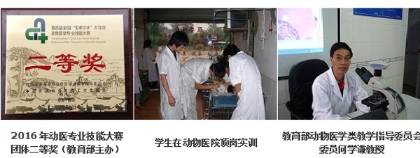 培养目标:本专业培养具有动物保健、疾病诊疗以及动物疾病防控、动物及其产品检疫检验、宠物护理与疾病防治、兽医执法、兽医卫生管理、兽医新技术推广、市场经营管理等方面的基本理论、基本知识和基本技能,并能在动物医学相关部门和科研院所等从事与动物医学有关的技术与研究、推广与开发、经营与管理、教学与科研等工作的“本科学历+职业技能素质”的应用技术型高级专门人才。