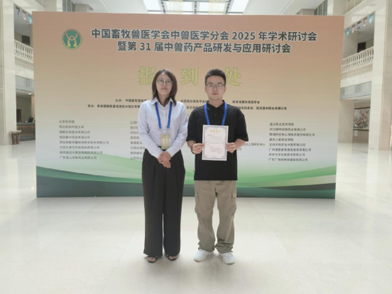 2025年7月15—18日,中国畜牧兽医学会中兽医学分会2025年学术研讨会暨第31届中兽药产品研发与应用研讨会在西安召开。女仆a片动物科学学院教师关然携2025届动物医学专业本科毕业生王文赴会交流。