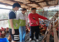 随后服务队来到白塔村为村民发放优质岩鹰鸡苗,每户20只,合理搭配12只公鸡和8只母鸡。团队成员系统讲解了饲养技术要点,强调饲料应采用七成精料和三成青料的科学配比,精料包含玉米、炒熟大豆等多种原料,青料则选用红薯、南瓜等时令作物。同时还介绍了"早少晚饱"饲喂原则,以及饮水管理、雏鸡保温以及放养密度等关键技术。