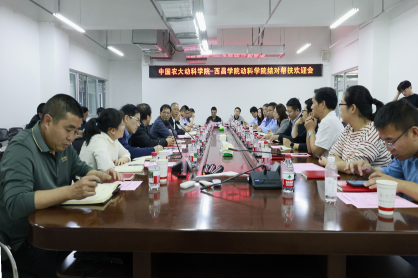 中国农大动物营养与饲料科学系主任、饲料中心教职工党支部书记马曦、动物营养与饲料科学系王凤来教授、动物遗传育种系主任孙从佼副教授、动物遗传育种系教授吴克亮等先后就自身研究方向、科研成果以及本科、硕士人才培养等方面进行了交流。