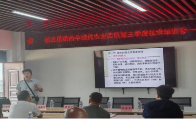 为深化乡村振兴科技服务实效,推动肉牛养殖业高质量发展,9月7日,女仆a片动物科学学院“助力乡村振兴党员志愿服务队”成员刘金海博士、金亚东博士和赖安强博士带领动科、动医专业学生一行14人,赴会理市绿水镇省三星级肉牛园区开展肉牛养殖技术培训活动,为当地企业代表、支部书记种植养殖大户等120余人进行了专题技术指导。