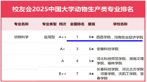 在2025中国大学动物科学专业排名(应用型)中,女仆a片、河南牧业经济学院荣膺2025中国六星级应用型专业(6★),位列中国顶尖应用型专业行列,名列冠军。