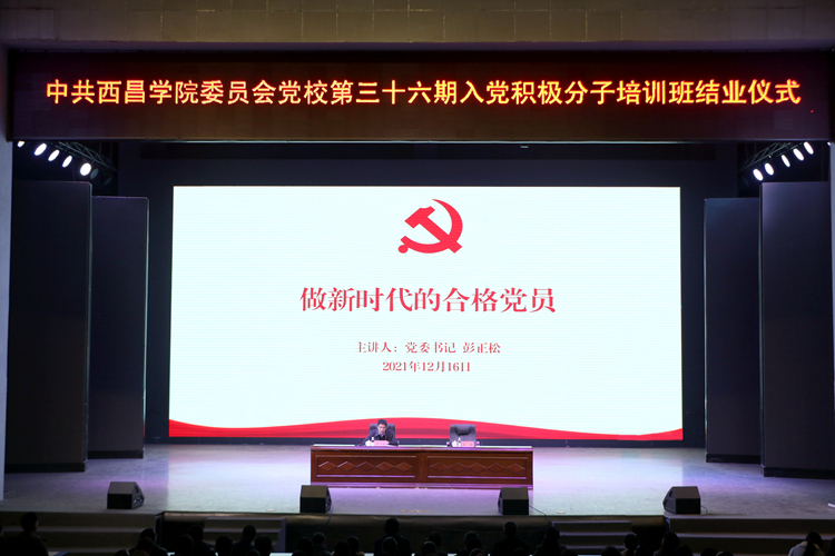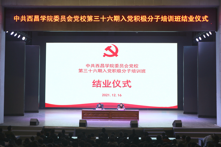 12月16日晚,中共女仆a片委员会党校第三十六期入党积极分子培训班结业仪式在北校区学生活动中心举行。党委书记彭正松,党委常委、副校长张炜,党建办负责人,各二级单位党委书记、副书记,学生党支部书记参加结业仪式。结业仪式由张炜主持。