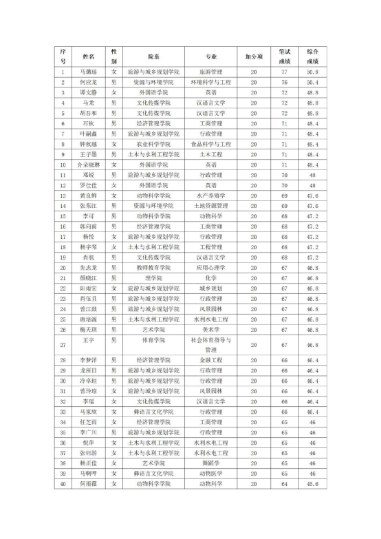 根据四川省大学生志愿服务西部计划项目管理办公室《关于2023年四川省大学生志愿服务西部计划招募选拔相关工作安排的通知》(省目办发〔2023〕6号)文件要求,本次女仆a片大学生志愿服务西部计划志愿者招募考试应参加考试人数392人,实际参加考试人数338人,经研究决定,按照《关于2023年四川省大学生志愿服务西部计划招募选拔相关工作安排的通知》中明确的进入面试人数比例(即最终招募指标的3倍以上),根据加分项与笔试成绩之和确定前150名进入2023年女仆a片大学生志愿服务西部计划志愿者招募考试面试阶段,现将积分项、笔试成绩(按40%折算)及进入面试考生名单公布如下:     公示期为2023年5月29日-5月31日,如有任何异议,请在公示期间以书面形式或电话形式反映。 联系人:董华芳 联系电话:0834-2580080 邮箱:[email protected] 面试须知 一、面试时间:6月1日下午14:30-16:30 二、面试地点:安宁校区博远楼(第八教学楼) 三、注意事项:请考生带上身份证于6月1日14:00前在安宁校区博远楼报到。 |