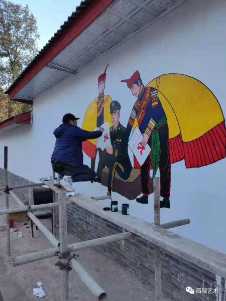这次昭觉县乡村壁画美化活动,是艺术学院文化扶贫、艺术扶贫系列项目之一,完成的壁画作品既是扶贫活动的成果,同时也是我院师生在服务社会活动中展现自我、增长才干、勇于担当、乐于奉献的形象展示。我院师生坚持以教学带动实践,以实践融入教学,本着将教学与实践相结合,将壁画艺术创作放到真正需要的地方,通过文化扶贫、艺术扶贫的活动,为美丽乡村建设涂抹一缕亮丽的风景线。一幅幅具有艺术风味的墙绘见证着艺术学院与昭觉县四开乡梭梭拉达村的友谊和成果,展现了我院师生设计创作素质和实践操作能力。在以后的工作中,艺术学院将继续立足专业特色,为地方经济文化建设和发展服务,为构建魅力、和谐社会添砖加瓦。