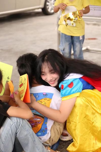在讲解的尾声,“白雪公主”柔声问道:“你们愿意给我一个温暖的拥抱吗?”孩子们闻言,纷纷涌上前来,张开他们纯真的双臂,将白雪公主紧紧环绕。这一场景充满了温暖与爱意,令人倍感温馨。在课堂的起始阶段,当提及艾滋病时,孩子们的脸上会露出些许惊恐与避让的神情。然而,在课堂的最后,他们以拥抱的形式回应了白雪公主,这一刻,他们不仅掌握了艾滋病的传播知识,更学会了对艾滋病人持有更多的关爱与接纳。