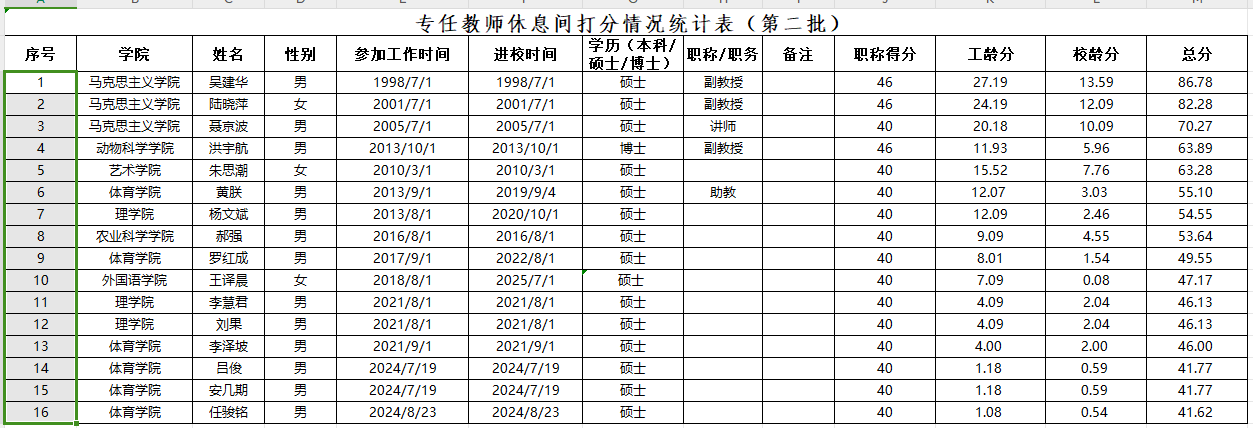 根据《女仆a片公有住房管理办法(试行)》(西学院〔2019〕168 号)第17条规定,“副高级及以下职称中的教学人员,根据教务处提供的课程表,一天中上、下午上课每周达三天及以上者,以学期为租住周期申请休息间”。根据各单位提交的相关申请材料,经审核,秋季学期第二批符合租住休息间的专任教师共12名。根据规定,现予以公示。