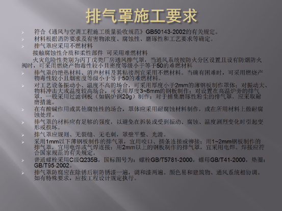 VOCs废气捕集几点注意事项: •1、废气风管不应同时包含局部排风系统与整体收集系统; •2、设置有采暖和空调的车间,废气宜优先采用局部收集措施; •3、废气收集的管路系统应设置用于风量平衡调试阀门; •4、废气收集系统应避免横向气流干扰; 此外,GB37822标准要求废气收集系统的输送管道应密闭。废气收集系统应在负压下运行,若处于正压状态,应对输送管道组件的密封点进行泄漏检测,泄漏检测值不应超过500μmol/mol,亦不应有感官可察觉泄漏。泄漏检测频次、修复与记录的要求按照GB37822标准中的第8章规定执行。