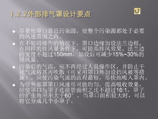 图文讲解VOCs废气收集系统来源:生态环境圈,VOCs减排工作站再整理编辑。 VOCs废气收集一直是VOCs治理同行关注的重点和项目执行中的弱点,大多数企业的VOCs废气收集及风量核算均没有特定标准和统一依据,特别是2013年至2019年度期间。可以预想,目前重点区域都在做VOCs治理后评估,要看看这些年大家说的VOCs治理已完成是到底完成到什么程度,其中废气收集应该是问题不少的一大块。生态环境部在2019年6月份发布《挥发性有机物无组织排放控制标准》(GB 37822-2019)标准,提出了对VOCs无组织排放收集的基本要求。此外,此标准要求VOCs废气收集系统排风罩(集气罩)的设置应符合GB/T 16758的规定,采用外部排风罩的,应按GB/T 16758、AQ/T 4274-2016规定的方法测量控制风速,测量点应选取在距排风罩开口面最远处的VOCs无组织排放位置,控制风速不应低于0.3 m/s。即对控制面风速提出不低于0.3m/s的要求,这是从最末端提出总的收集要求,此外,各个地方对收集率有70-90%的要求,按照不同行业及污染源来划分。