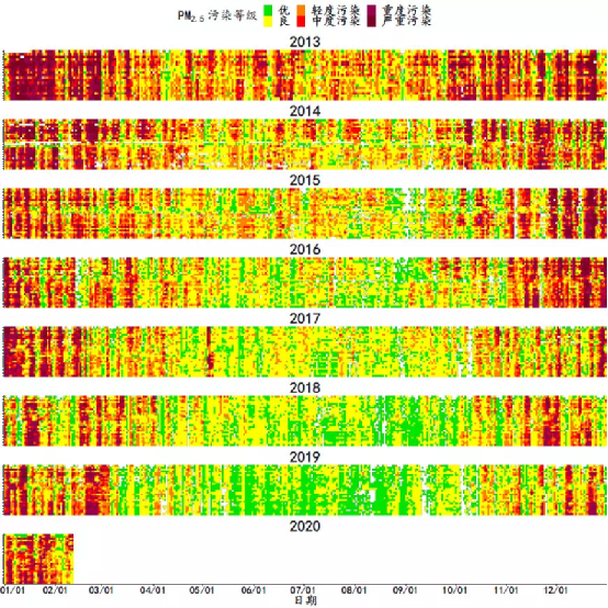 图1.2:2013-2020年“2+26”城市PM2.5日均浓度变化 二、我国不同区域氨减排精准化策略的科学依据