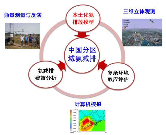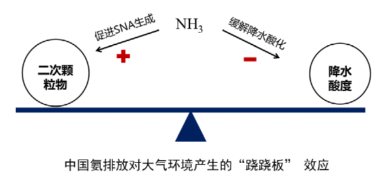 图2.1:中国氨排放对大气环境产生的“跷跷板效应” 氨减排虽然有利于降低人群PM2.5的暴露风险,但也会导致酸雨恶化影响生态健康,北京大学朱彤和宋宇等人研究表明,应分区域精准制定我国氨减排策略。研究进展以专报形式在2019年获国家领导人批示,可对未来政策制订起到支撑作用。
