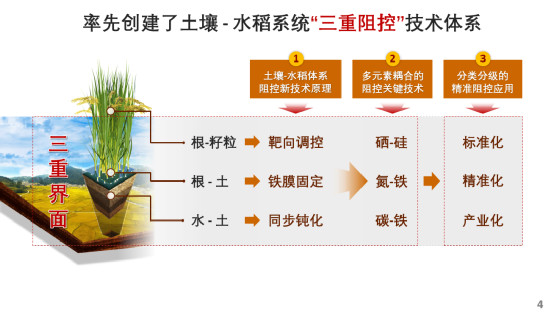 图3.1:“三重阻控”技术体系 针对我国稻田土壤重金属污染治理的重大需求,以及环境地球科学的国际前沿,广东省生态环境技术研究所的李芳柏团队与合作者协同攻关率先创建了土壤-水稻系统重金属污染的“三重阻控”技术体系,实现了新原理-新技术-规模应用的系统创新,为国家土壤污染防治行动计划的有效实施提供了技术支撑。