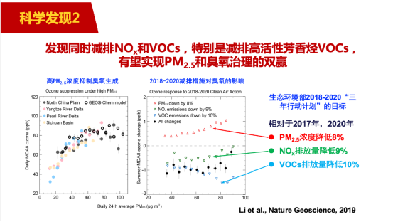图9.1:科学发现 酸雨、细颗粒物等大气污染问题改善趋势持续向好,群众面临新的困惑:为何有时候蓝天仍是污染日?原因在于我国正面临日益严重的臭氧污染。“大气国十条”实施以来,城市地区大气污染六项指标中五项已下降,唯有臭氧浓度持续上升。南京信息工程大学廖宏教授团队研究发现,近几年我国PM2.5浓度的降低加剧了臭氧污染。未来唯有同时减排氮氧化物和挥发性有机物,才能更有效地实现霾和臭氧治理的双赢。该项研究为我国制定协同减排策略提供了关键性的理论依据。