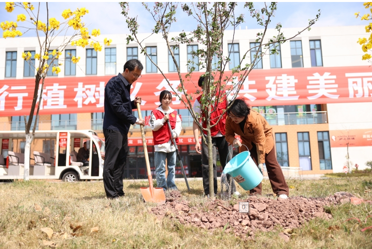 3月12日,春意渐浓。在校党委书记朱占元,党委副书记、院长白洁的带领下,全体校领导、校内各单位和二级学院师生,手持铁锹水桶,在安宁校区新区,共同种植下“垂丝海棠”“果树”“银杏树”等植物140棵,为校园增添更多绿色景色,共同构成动人的春日画卷。