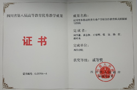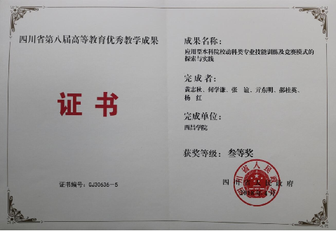 近日,四川省教育厅公布四川省第八届高等教育优秀教学成果奖,中心团队喜获一等奖1项、二等奖2项、三等奖1项。
