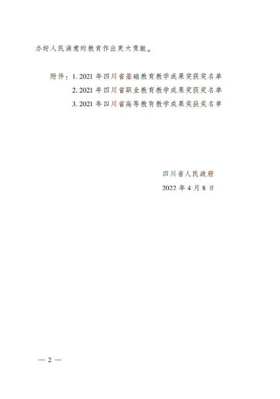 2022年4月,四川省教育厅公布2021年四川省教学成果奖的获奖名单,由学校党委书记彭正松牵头,中心团队成员作为骨干的教学成果“凉山彝区应用型农科人才协同培养体系构建与实践”喜获二等奖。