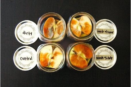 实验器材 2个苹果、4个烫洗消毒过的密封瓶、便签纸、笔 实验步骤 1.在4个用开水烫洗的瓶子上分别贴上以下标签:对照瓶、脏手瓶、随便洗手瓶、认真洗手瓶。 2.将两个苹果对半切开,其中一块放入“对照瓶”。这块苹果上没有额外增加细菌,它的正常腐烂状况将作为和其它苹果的参照对比。 3.取半块让孩子在未洗手时摸一摸其切面,然后放入“脏手瓶”中。 4、让孩子用清水洗手后摸一摸第三块苹果切面,将该苹果放入“随便洗手瓶”。 5.最后,让孩子用洗手液认真洗手后去摸最后半块苹果,再将它放入“认真洗手瓶”。(注:放入苹果后,所有瓶盖要盖紧密封。) 6.每天可以和孩子一起观察四个苹果的变化,经过几天会发现“脏手瓶”和“随便洗手瓶”里的苹果发霉最严重。 实验解析 我们的双手在没有清洁的状态下,存在着大量肉眼不可见的细菌。 当脏手摸过苹果后,这些细菌会转移到苹果表面继续生长;认真清洁双手后,手上细菌量减少,因此转移到苹果上的细菌也相应变少。 这个实验不但可以让孩子认识细菌,还可以帮孩子养成认真洗手的好习惯! |