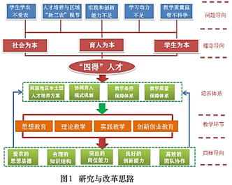 一、思想引领,构建育人新模式,以民族地区新型农科人才培养为核心 1.立足凉山彝区需求,将“知农爱农为农”融入新农科人才培养全过程 “爱农”主要解决学农不爱农问题,培养学生责任、担当、奉献意识;“知农”主要解决学农不懂农的问题,提高学生专业能力和行业素养;“为农”主要解决学农不为农的问题,引导学生服务民族地区“三农”。 理念情怀引领。铸牢中华民族共同体意识,开展大国“三农”教育、优秀传统农耕文化教育,引导学生树立崇高理想、献身“三农”。将“三农”情怀教育与专业教学紧密结合,强化专业思政、课程思政、教学团队思政建设,用好课堂教学主渠道。 先进典型示范。实施“双三进”计划,即组织师生进村头,了解农村;进田头,了解农业;进屋头,了解农民。知名校友进课堂,发挥榜样作用;知名专家进课堂,发挥引领作用;知名企业家进课堂,发挥模范作用。 劳动教育筑基。开展与农事契合的学期制生产实践教育、社会实践“三下乡”活动;实施校园文化服务“三农”协同育人计划,通过学生社团将校园文化、专业思想和爱农情怀融合,参与校园“大凉山农特产品电商平台”“现代农业双创基地”等引导学生树立艰苦奋斗和自强自立的精神,增强“三农”情结。 2.创新机制,强化“三保障”,着力提升人才培养质量 (1)强化师资保障:拓展校外资源,校地企共育高水平教师队伍 一是注重外引。制定了高层次人才引进政策引进高学历、高水平人才;开展与企业“双进计划”,即学校教师、学生进企业,企业高管、高工进学校,双向流动,融合发展。 二是强化内培。规定农科新进青年教师每年必须到生产一线锻炼,积累实践经验;实施“四个一工程”,即“由教授领一个团队,联一个企业,兴一个产业,富一方农民”和教师“三进计划”,即进扶贫一线、进企业、进农业园区,在服务“三农”中丰富实践经验,在促进凉山农业发展的同时,自身能力也得到提高。 三是实施“引进来”“走出去”措施。我院农科专业先后聘用行业、企业20余位高职称人员为兼职教师;我院与通威股份、四川中烟、四川铁骑力士集团、四川乾坤集团等大中型集团合作,借助企业优势资源,校企共育,校企连续多年集中培训农科专业教师,使农科专业“双师双能型”教师比例达到60%以上。 (2)强化平台保障:汇集各方资源,着力建设支撑新农科人才培养的三大平台 在学校整体应用型转型发展背景下,学校投入1.45亿经费建设校内攀西现代农业馆、农科产教融合实训平台等校内实验实训平台;生物实验中心以国家级、省级大学生校外实践教学基地为龙头,积极拓展校外实践教学基地,先后与通威股份、四川中烟、新希望集团等20余家农业领军企业签订协议,校企协同搭建校外实践教学平台;以学校建设的现代农业创新创业基地、共青团中央青年就业创业见习基地为引领,与地方、企业共建科研平台和农业专家大院,建立创新创业实践平台。 (3)强化质量保障:构建校地企“全员、全过程、全方位”协同的教学质量保障体系 积极破解大凉山彝区校地、校企、校所合作的瓶颈问题,研究制定校地企协同育人的机制体制,通过共同设计人才培养方案、共育“双师双能型”教师队伍、共建科研教学平台、共同承担课程教学、共同实施培育过程管理,构建以民族地区校地企利益共同体为纽带、现代农业全产业链为导向的人才培养新机制;坚持教育教学质量第三方评价、教学状态评估和专业评估,构建“发现问题—解决问题—提升质量”的闭环式教学质量保障体系(图2)