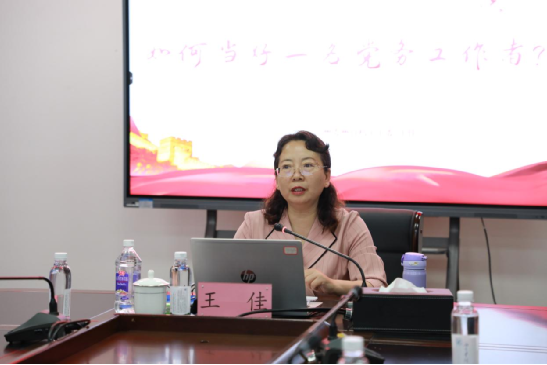 王佳从“厘清一个概念”“处理好两个关系”“提升机关党建工作水平”“党务工作者应具备的素质”“高校党建工作路径”五个方面作讲解,其间贯穿了一个个鲜活案例,伴有随堂互动问答,既是一堂党的知识的理论课,也是一堂党务工作的实操课。通过讲解,进一步增强了机关干部对党务工作重要性的认识,厘清了机关党务工作者的工作职责,强化了“围绕中心抓党建,抓好党建促发展,党建与业务双促双赢”的理念,为推进机关党务工作提供了参考。
