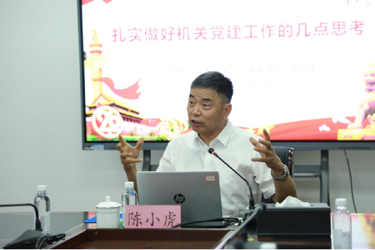 陈小虎从身边的例子入手,深入浅出讲明党的建设是“以党的政治建设为统领,全面推进党的政治建设、思想建设、组织建设、作风建设、纪律建设,把制度建设贯穿其中,深入推进反腐败斗争”总布局。机关党委务必要按照总布局,围绕学校中心工作谋划机关党支部的各项工作,进一步增强管党治党的系统性和科学性,进一步增强机关党支部的战斗力。他指出,要理清党建与党务的关系,党建强调顶层谋划,党务强调具体执行,两者关系紧密,党建指导党务工作,党务推进党建工作。尤其强调机关要注重政治建设,必须有坚定的政治方向,鲜明的政治立场,敏锐的洞察力和鉴别力、强烈的事业心责任心。最后,强调深入贯彻中央八项规定精神学习教育就是要做好作风建设,党的作风关系人心向背,作风问题本质上是党性问题,核心是党同人民群众的关系问题,领导干部要带头转变作风,持续纠治“四风”,不断推进作风建设常态化长效化。