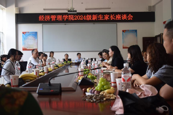 2024年8月31日,经济管理学院在8109教室举办2024级新生家长座谈会。参与本次座谈会有经济管理学院党委书记肖立新教授,经济管理学院党委副书记、院长陆铭宁教授,经济管理学院党委副书记、纪委书记冉龙舞同志,学院各教研室负责人,相关科室负责老师以及新生家长代表,此次座谈会由冉龙舞同志主持。