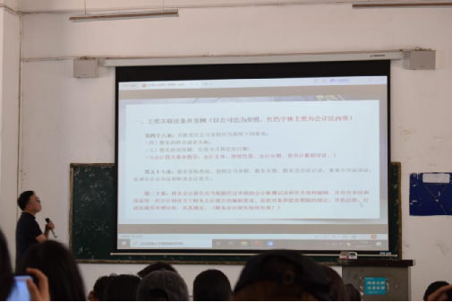 紧接着,蒋春城老师深入剖析了会计原理与法律规则的逻辑结构,清晰地揭示了两者之间的紧密联系。他结合主要关联法条和具体案例,生动形象地展示了法律与会计在实际操作中的融合与应用,让同学们深刻感受到掌握这两门学科的重要性。