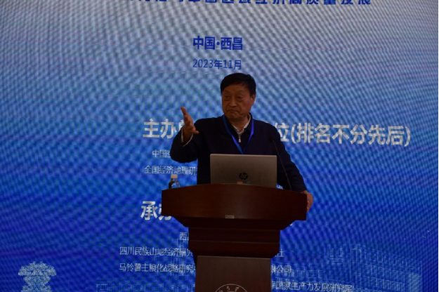 四川外国语大学成都学院党委书记杨继瑞教授做了题为“凉山:协同构筑向西开放战略基地新支撑极思考及举措”的报告.响应习近平总书记“向西开放”的号召,杨教授分析了凉山地区开放和做大做强外向型经济的现状和短板.杨教授提出依托交通、旅游康养、跨境电商、冷链物流、人才培养等一系列措施促进凉山外向型经济的发展.