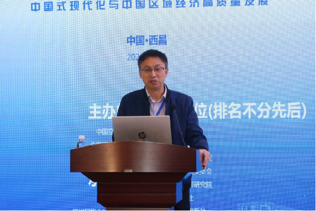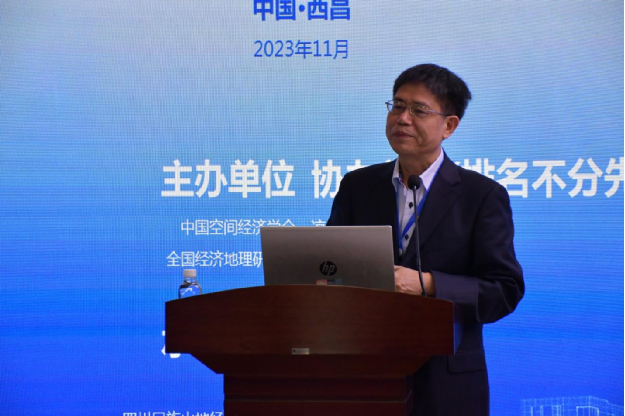 中国科学院地理科学与资源研究所金凤君教授做了题为“中国式现代化与成渝双城经济圈发展”的报告.金教授对成渝经济圈的功能定位、发展机遇与挑战、发展方向进行了分析.金教授更是向年轻学者们分享了成渝经济圈现发展阶段值得研究的新课题,如重大区域间的协调互动、产业链和创新连协同布局、双循环新发展格局的战略衔接、面向数字经济的新区位和新空间组织模式.