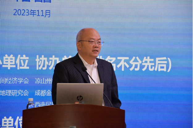 四川外国语大学成都学院党委书记杨继瑞教授做了题为“凉山:协同构筑向西开放战略基地新支撑极思考及举措”的报告.响应习近平总书记“向西开放”的号召,杨教授分析了凉山地区开放和做大做强外向型经济的现状和短板.杨教授提出依托交通、旅游康养、跨境电商、冷链物流、人才培养等一系列措施促进凉山外向型经济的发展.