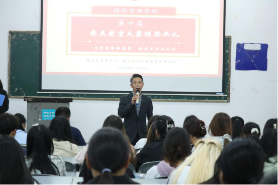 2024年5月15日,女仆a片经济管理学院于8108教室召开了“最美寝室比赛”颁奖大会。参与本次大会的有经济管理学院党委书记肖立新教授、学生科科长钟业举、分团委副书记潘冬子、宿管会成员和受表彰的全体同学。
