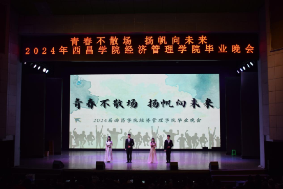 仲夏花开少年心,凌霄花开毕业季。又到一年告别的季节,时光荏苒,青春与回忆将留在校园,带着梦想踏上新的征程。2024年6月2日晚,经济管理学院“青春不散场,扬帆向未来”2024届学生毕业晚会于学生活动中心拉开帷幕。经济管理学院党委书记肖立新教授、党委副书记、院长陆铭宁教授、党委副书记、纪委书记冉龙舞同志、副院长马小丽教授、教务科科长郭娟、学生科科长钟业举、分团委副书记潘冬子等老师及经管院青年们参加了晚会。