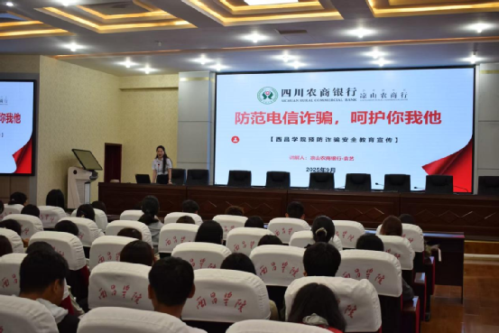 为深入贯彻教育部“平安校园”建设部署要求,切实筑牢2025级新生校园安全防线,提升新生对电信网络诈骗的识别与防范能力,9月19日,经济管理学院特邀凉山农商银行反洗钱检测中心资深讲师袁艺,在至真楼国际学术报告厅开展“防范电信诈骗 呵护你我他——新生防电信诈骗安全教育”专题讲座。学院2025级全体新生到场聆听。