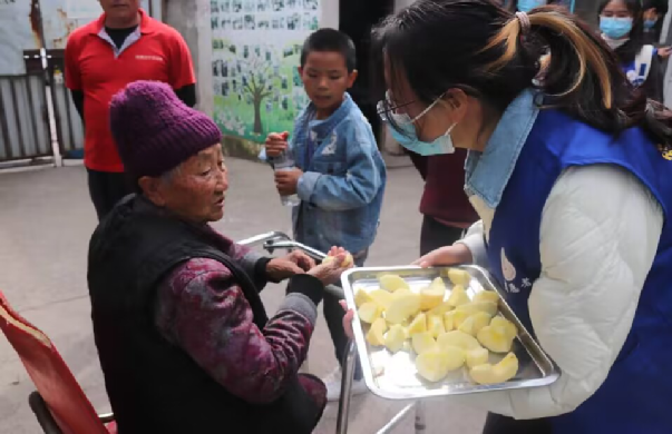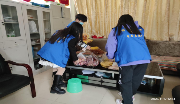 志愿者们为老人们带来了面包牛奶,水果等以表慰问。慰问活动有序开展,同学们分工明确,扫地、拖地、擦灰尘.......在一片欢声笑语中大家干得都格外起劲,细致的将敬老院的卫生打扫干净。老人们好奇的眼神中,同学们与老人们谈谈心、拉拉家常,听他们讲述以前的故事,谈到动情处还会不自觉地拉紧志愿者的袖子,一步步的拉近了心与心的距离,在敬老院的老人多数亲人都不在身边,他们也需要经常倾诉自己的内心,表达自己的感情。志愿者们也积极向老年人们讲授养生小知识、给老年人们捏肩捶背、将水果削皮去核切块后分给各位老人。看到老人的袖子破了就拿起针线开始缝补,看到慈祥的老人脸上露出会心的笑容,听到爽朗的笑声在敬老院萦绕,整个敬老院一片其乐融融的景象,想必触动了每一位经管院学子的内心,深深的明白了此次爱老敬老志愿活动的意义——弘扬志愿精神,关爱老年群体。