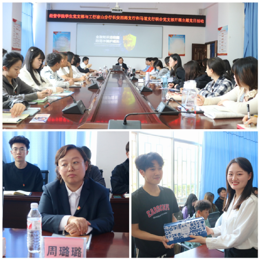 本次主题党日举办一是号召党员发挥先锋模范作用、弘扬雷锋精神、保持为“为人民服务”的作风、与群众一起共筑反诈防线,二是希望党员同志学习工行党员们身上的“雷锋精神”,向老党员取经,向优秀党员学习,提升个人党性修养。活动由经管第三学生支部书记王佳勋同志主持。