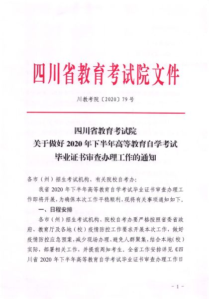关于做好2020年下半年高等教育自学考试毕业证书审查办理工作的通知_页面_01