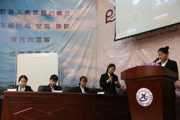 辩论赛决赛是由正方2017级应用心理学1班和反方2017级应用心理学2班围绕“中小学语文教材古诗文大幅度增加利大于弊还是弊大于利”展开辩论。
