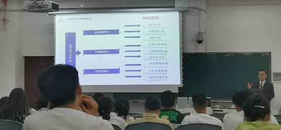 宣讲人首先介绍了公司的基本情况,他介绍到该公司是国家开发投资集团有限公司控股企业雅砻江流域水电开发有限公司的全资子公司,主要致力于风电、光伏等可再生能源项目的投资开发建设、生产运营及相关服务。接着他重点讲解了本次招聘的职位要求、薪资待遇、工作环境和公司发展前景。