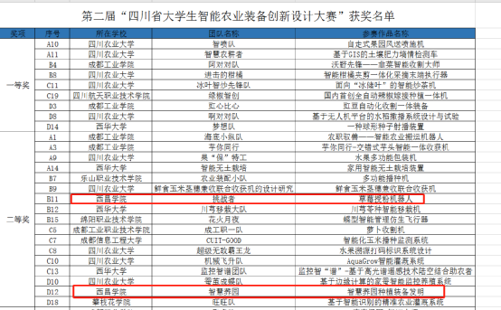 2024年10月13日,第二届四川省大学生智能农业装备创新设计大赛在四川农业大学雅安校区如期举行。机械与电气工程学院三个代表队荣获两个二等奖和一个三等奖,取得了优异的成绩。