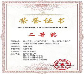 本次比赛我校有2个作品入围决赛,机电学院作品《废中寻宝,向“新“求”质”--让垃圾“浴火重生”》获得二等奖;作为非资源环境专业的参赛选手,此次获奖是我院在本项赛事的新突破。