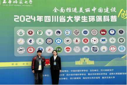 2024年11月16日,由唐烨老师带领2022级电气工程及其自动化专业学生吴顺扬和2022级汽车服务工程专业学生李梦瑶前往西华师范大学参加2024年四川省大学生环保科普创意大赛决赛。