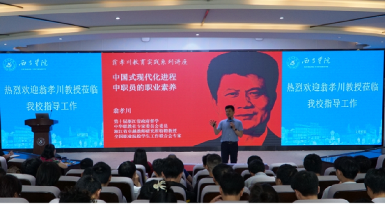 为了提升我院学生职业能力素养,促进学院学生高质量就业,我院邀请了全国知名教育专家翁孝川教授于2024年5月27日下午14:30在致知楼环形报告厅为学院师生开展了以“中国式现代化进程中职员的职业素养”为主题的讲座。