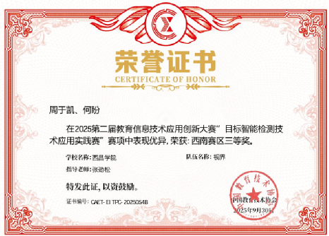 本次比赛采用线上参赛模式,我院参赛团队凭借扎实的技术功底,在赛事中表现突出,成功斩获西南地区区域三等奖,充分展现了学院在理论教学与工程实践相融合的人才培养成效。