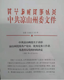 热烈祝贺我院教师党支部在中共凉山州委组织的“两优一先”评选活动中荣获“凉山州先进基层党组织”。此次活动是中共凉山州委在庆祝中国共产党成立100周年之际,为进一步激励全州各级党组织和广大党员在新的历史时期展现新担当新作为而举行的,希望全州各级党组织和广大学员干部以党史学习教育为契机,切实做到学史明理、学史增信、学史崇德、学史力行,在新的历史起点上推动富民强州再上新台阶,为全面建设社会主义现代化新凉山不懈奋斗!