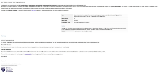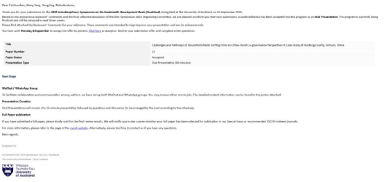大会上,王棚以《城乡共治视角下的生活垃圾分类困境与路径探索——以中国四川会东县为例》为题,作十分钟口头报告,深入剖析城乡二元结构下垃圾分类政策的现实困境,提出城乡共治的治理路径,回应了联合国可持续发展目标中“可持续城市和社区”“负责任消费和生产”的核心议题;邓景则以《多中心治理视角下四川德昌县政府在城乡社区治理中的行为探究》为题,进行三分钟学术演示,从多中心治理理论出发,结合实地调研,剖析基层政府在城乡治理中的职能与挑战,并提出多元主体协同参与的实践策略,呼应了SDGs“和平与伙伴关系”的研究方向。两位同学以流利的英文表达、扎实的田野调研和鲜明的理论视角,赢得了国际同行的高度关注与赞誉,她们的表现不仅展示了女仆a片在本科生科研培养、国际化教育方面的成果,更体现了新时代青年学子走出课堂、学以致用的实践风貌。会后,王棚同学表示,这次经历极大开阔了她的学术视野,更坚定了将所学知识用于服务地方发展的决心;邓景则感言,学术无国界,希望未来能把更多中国基层治理的经验分享给世界。