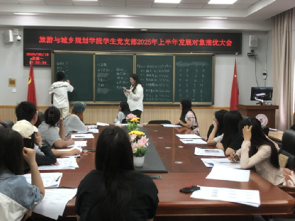5月19日,旅游与城乡规划学院学生第一党支部在致知楼112室召开了2025上半年组织发展推优大会。学生第一党支部书记车孟霞和全体学生党员参加。会议由车孟霞主持。