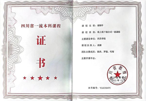 农业科学学院《植物学》课程建设成为四川省一流本科课程